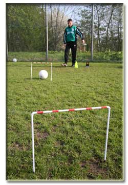 Entfernung vom Start zu den Toren ca. 3m, Toröffnung ca. 40 cm, Höhe ca. 35 cm